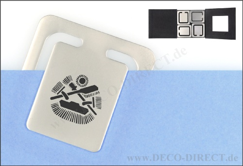 Handwerkergeschenk 4er-Set Lesezeichen Bürstenbinder aus Metall, je 43 x 38 mm, in exklusiver Karton-Geschenkverpackung, Gravurempfehlung: Initialen auf Lesezeichen / Schild auf Verpackungsaußenseite, Bestellnummer: 58111510