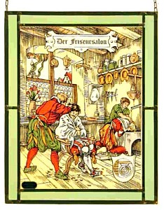 Handwerkergeschenk Glasbild Friseursalon, handbemalt und bei ca. 700°C gebrannt, ca. 24 x 30 cm, Bestellnummer: 65150901
