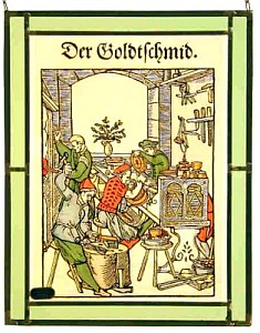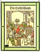 Handwerkergeschenk Glasbild Goldschmied, handbemalt und bei ca. 700°C gebrannt, ca. 24 x 30 cm, Bestellnummer: 65160801