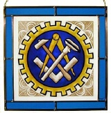 Handwerkergeschenk Glasbild Handwerkerinnungs-Zeichen Mechaniker, handbemalt und bei ca. 700°C gebrannt, ca. 27 x 27 cm, Bestellnummer: 65221301