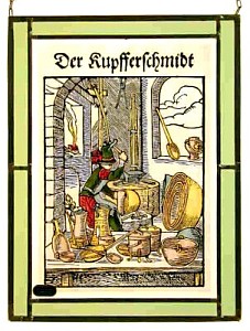 Handwerkergeschenk Glasbild Kupferschmied, handbemalt und bei ca. 700°C gebrannt, ca. 24 x 30 cm, Bestellnummer: 65160802