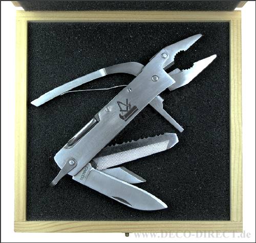 Handwerkergeschenk Multifunktionswerkzeug 2 Schreiner aus Edelstahl mit 10 Funktionen, in Holz-Geschenkverpackung (16,5 x 16,5 x 3,5 cm), zusätzl. Gravur-Empfehlung: auf Verpackung, Bestellnummer: 72281255