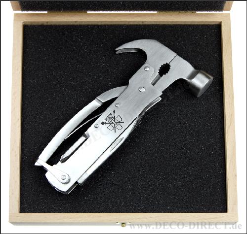 Handwerkergeschenk Multifunktionswerkzeug Maler aus Edelstahl mit 9 Funktionen, inkl. Bereitschaftstasche, ca. 13,5 x 7 x 2 cm, in Holz-Geschenkverpackung (16,5 x 16,5 x 3,5 cm), Gravur-Empfehlung: Namensgravur auf Griff / Widmung auf Verpackung, Bestellnummer: 72220250