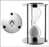 Handwerkergeschenk Sanduhr Steinmetz aus Edelstahl, Laufzeit ca. 3 Minuten, Maße: 7,0 x 9,5 cm, in Metall-Geschenkbox (8,7 x 8,7 x 12,0 cm), Gravurempfehlung: auf Oberseite Sanduhr, Bestellnummer: 76282730