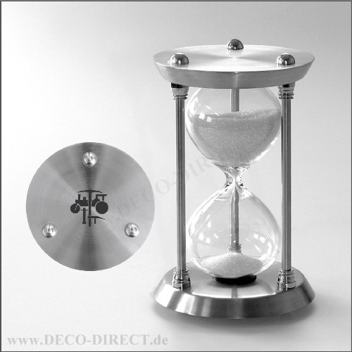 Handwerkergeschenk Sanduhr Straßenbauer aus Edelstahl, Ø 10,5 cm, H: 17 cm, Laufzeit ca. 15 min., Glas mundgeblasen, feiner Glassand, Gravurempfehlung: auf Sanduhr, Bestellnummer: 38282910