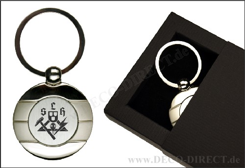 Handwerkergeschenk Schlüsselanhänger rund Schilder- und Lichtreklamehersteller aus Metall, L: ca. 7,5 cm, in exklusiver Geschenkverpackung, Gravurempfehlung: Schild auf Geschenkverpackung, Bestellnummer: 10283660