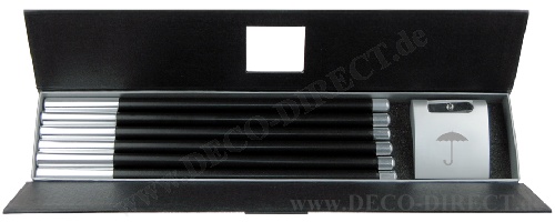Handwerkergeschenk Schreibset Schirmmacher, 6 Bleistifte mit Metallkappe und Design-Anspitzer mit dezent eingraviertem Symbol, in exklusiver Karton-Geschenkverpackung (26 x 5,5 x 2,5 cm), Gravurempfehlung: Namensgravur auf Bleistifte / Text auf Verpackungsaußenseite, Bestellnummer: 62283810