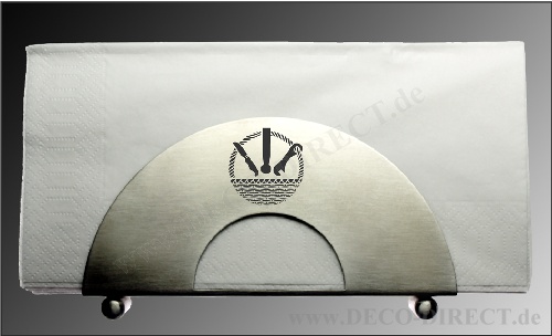 Handwerkergeschenk Serviettenhalter Korbmacher aus Edelstahl, Maße: 15,0 x 8,0 x 3,0 cm, in Metall-Geschenkbox (15,0 x 15,0 x 6,1 cm), Gravurempfehlung: auf Serviettenhalter, Bestellnummer: 76201550