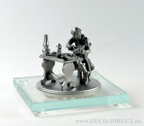 Handwerkergeschenk Zinnminiatur Uhrmacher auf Glassockel 10 x 10 cm, Bestellnummer: 40300101