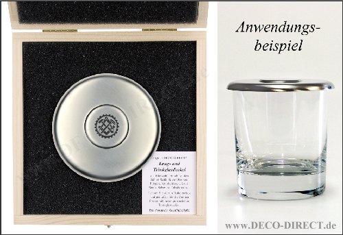 Handwerkergeschenk Trinkglasdeckel Mechaniker aus Edelstahl, Ø 9,5 cm, in Holz-Geschenkverpackung (16,5 x 16,5 x 3,5 cm), Gravurempfehlung: Rundgravur auf Trinkglasdeckel / auf Verpackungsaußenseite, Bestellnummer: 29221310