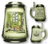 Handwerkergeschenk Zunftseidel Der Fliesenleger mit Zinndeckel, Zunftzeichen und Meisterspruch Meister ist wer was ersann, Geselle wer was kann, Lehrling jedermann, 0,5 l, aus Keramik grau/grün, Höhe ca. 17 cm, Gravurempfehlung: auf Zinndeckel, Bestellnummer: 74150510