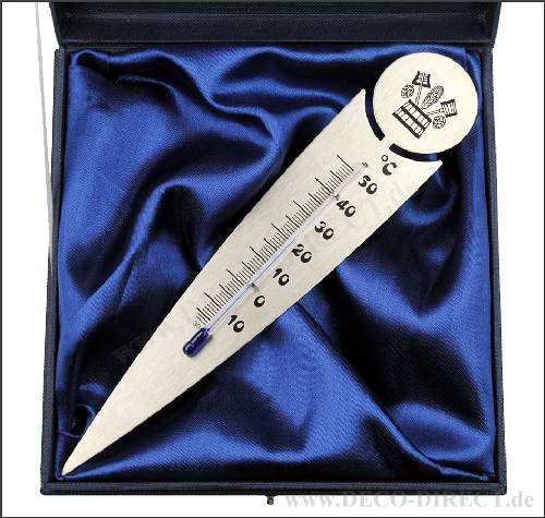 Handwerkergeschenk Blumentopf-Thermometer Brauer aus Edelstahl, L: 21,5 cm, in blauer Etuiverpackung (17 x 17 x 3,5 cm) mit Stoffeinlage, zusätzl. Gravur-Empfehlung: Schild auf Verpackung, Bestellnummer: 13111050