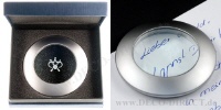 Handwerkergeschenk Briefbeschwerer Drechsler mit Lupe und Chrom-Rand, Ø 8,5 cm, in exklusiver Geschenkverpackung, Gravurempfehlung: auf Briefbeschwerer / Schild auf Geschenkverpackung, Bestellnummer: 72130210