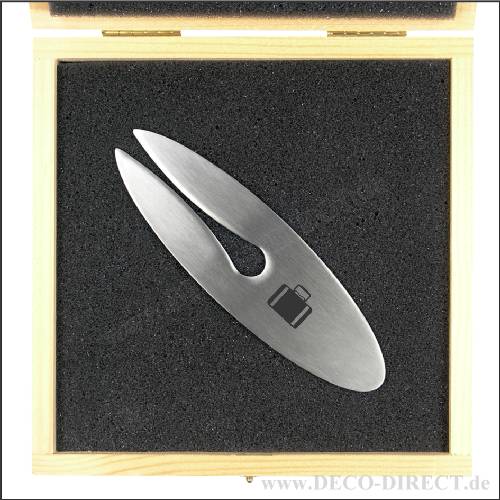 Handwerkergeschenk Brieföffner Koffer aus Edelstahl, 135 x 39 x 1 mm, in Holz-Geschenkverpackung (16,5 x 16,5 x 3,5 cm), Gravur-Empfehlung: auf Brieföffner / auf Verpackungsaußenseite, Bestellnummer: 58202520