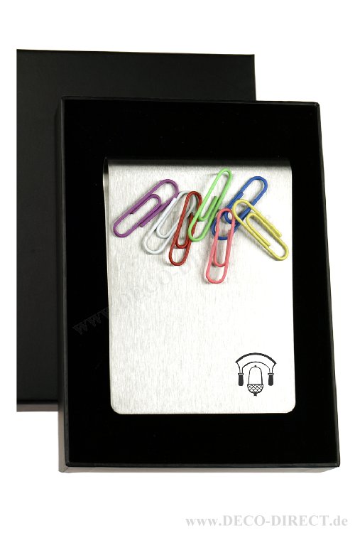 Handwerkergeschenk Büroklammernhalter Gerber aus Edelstahl mit Magnet, 9,2 x 6,7 cm, in exklusiver Karton-Schiebeverpackung, Gravurempfehlung: auf Büroklammernhalter / Schild auf Verpackung, Bestellnummer: 62160420