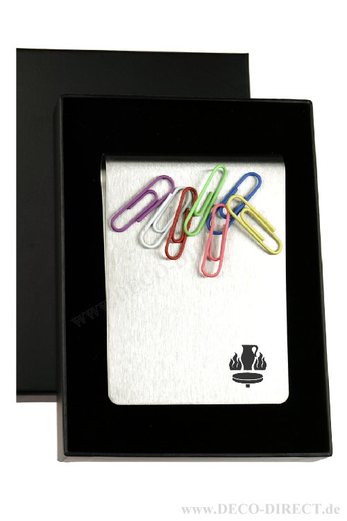 Handwerkergeschenk Büroklammernhalter Töpfer aus Edelstahl mit Magnet, 9,2 x 6,7 cm, in exklusiver Karton-Schiebeverpackung, Gravurempfehlung: auf Büroklammernhalter / Schild auf Verpackung, Bestellnummer: 62290520