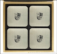 Handwerkergeschenk 4er-Set Untersetzer Baugewerbe aus Edelstahl, quadratisch mit abgerundeten Ecken, jeweils 95 x 95 mm, in exklusiver Holz-Geschenkverpackung (22,5 x 22,5 x 3,5 cm), Gravurempfehlung: auf Untersetzer / auf Holz-Geschenkverpackung, Bestellnummer: 76111820