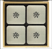 Handwerkergeschenk 4er-Set Untersetzer Graveur aus Edelstahl, quadratisch mit abgerundeten Ecken, jeweils 95 x 95 mm, in exklusiver Holz-Geschenkverpackung (22,5 x 22,5 x 3,5 cm), Gravurempfehlung: auf Untersetzer / auf Holz-Geschenkverpackung, Bestellnummer: 76161320
