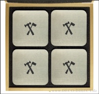 Handwerkergeschenk 4er-Set Untersetzer Installateur aus Edelstahl, quadratisch mit abgerundeten Ecken, jeweils 95 x 95 mm, in exklusiver Holz-Geschenkverpackung (22,5 x 22,5 x 3,5 cm), Gravurempfehlung: auf Untersetzer / auf Holz-Geschenkverpackung, Bestellnummer: 76180320