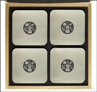 Handwerkergeschenk 4er-Set Untersetzer Instrumentenbauer aus Edelstahl, quadratisch mit abgerundeten Ecken, jeweils 95 x 95 mm, in exklusiver Holz-Geschenkverpackung (22,5 x 22,5 x 3,5 cm), Gravurempfehlung: auf Untersetzer / auf Holz-Geschenkverpackung, Bestellnummer: 76180420
