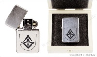 Handwerkergeschenk Benzin-Feuerzeug Stukkateur aus Metall mit gebürsteter Oberfläche, ca. 5,7 x 3,6 x 1,2 cm, nachfüllbar mit Feuerzeugbenzin (Lieferung aus Sicherheitsgründen ungefüllt), in Holzverpackung (9,5 x 9,5 x 3,5 cm), Gravurempfehlung: auf Verpackung, Bestellnummer: 72283370
