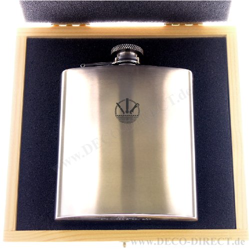 Handwerkergeschenk Flachmann Korbmacher 2 aus Edelstahl, Inhalt: 180 ml, mit Spezial-Innen-Schutzbeschichtung für gleichbleibenden Geschmack, in Holz-Geschenkverpackung (16,5 x 16,5 x 3,5 cm), Gravurempfehlung: auf Flachmann / auf Verpackungsaußenseite, Bestellnummer: 72201540