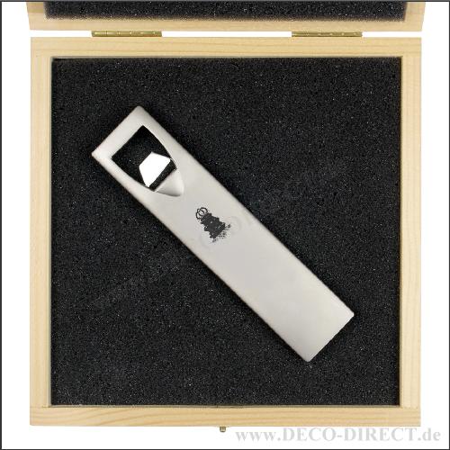 Handwerkergeschenk Flaschenöffner Konditor aus Metall, 129 x 30 x 11 mm, in Holz-Geschenkverpackung (16,5 x 16,5 x 3,5 cm), Gravur-Empfehlung: auf Flaschenöffner / auf Verpackungsaußenseite, Bestellnummer: 58201430