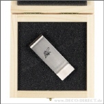 Handwerkergeschenk Geldscheinklammer Müller 2 aus Edelstahl, 57 x 20 x 9 mm, in Holz-Geschenkverpackung (9,5 x 9,5 x 3,5 cm), Gravurempfehlung: Initialen auf Geldscheinklammer / Text auf Verpackungsau ...