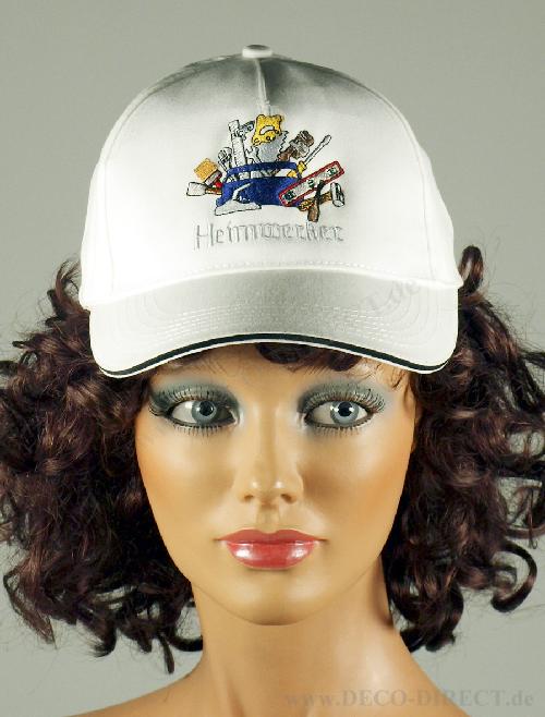 Handwerkergeschenk Cap Heimwerker weiß aus 100% Baumwolle, mit eingesticktem Symbol und verstellbarerem Verschluss, variable Größe für Erwachsene, Bestellnummer: 48171110