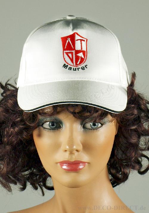 Handwerkergeschenk Cap Maurer weiß aus 100% Baumwolle, mit eingesticktem Symbol und verstellbarerem Verschluss, variable Größe für Erwachsene, Bestellnummer: 48220710