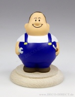 Handwerkergeschenk Berufe-Figur Mechaniker Mike, H: ca. 10 cm, auf Sockel aus Buche-Massivholz Ø ca. 9 cm, in Geschenkbox, Gravur-Empfehlung: Schild auf Verpackungsaußenseite / auf Holzsockel, Bestell ...