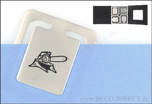 Handwerkergeschenk 4er-Set Lesezeichen Motorsäge aus Metall, je 43 x 38 mm, in exklusiver Karton-Geschenkverpackung, Gravurempfehlung: Initialen auf Lesezeichen / Schild auf Verpackungsaußenseite, Bestellnummer: 58320210