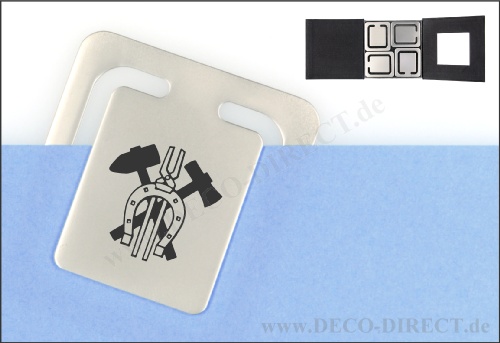 Handwerkergeschenk 4er-Set Lesezeichen Schmied 1 aus Metall, je 43 x 38 mm, in exklusiver Karton-Geschenkverpackung, Gravurempfehlung: Initialen auf Lesezeichen / Schild auf Verpackungsaußenseite, Bestellnummer: 58281010