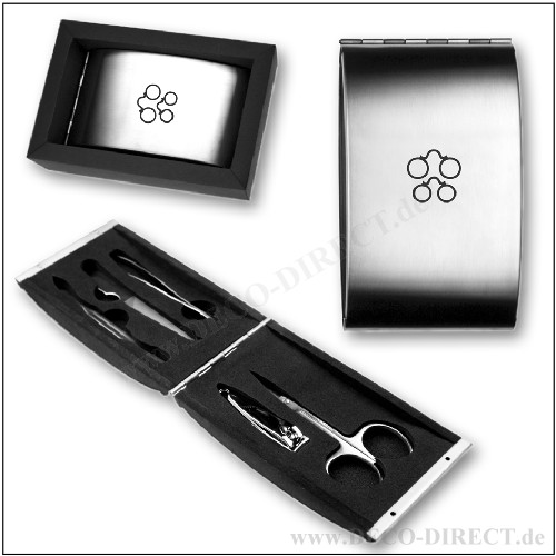 Handwerkergeschenk Manikürset Optiker, Edelstahl 12 x 7 x 3 cm, Inhalt: Nagelschere, Nagelfeile, Nagelknipser, Pinzette, Nagelreiniger, in Geschenkverpackung, Gravurempfehlung: auf Manikürset/Schild auf Verpackungsaußenseite, Bestellnummer: 89240320