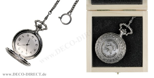 Handwerkergeschenk Taschenuhr Feuerwehr, antik versilbert, Ø ca. 48 mm, Handaufzug, arabisches Zifferblatt, Sprungdeckel und Kette, in Holzverpackung (9,5 x 9,5 x 3,5 cm), Gravurempfehlung: auf Verpackungsaußenseite, Bestellnummer: 82150310
