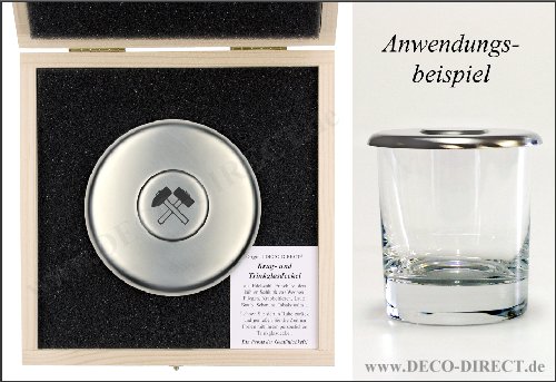 Handwerkergeschenk Trinkglasdeckel Bergarbeiter aus Edelstahl, Ø 9,5 cm, in Holz-Geschenkverpackung (16,5 x 16,5 x 3,5 cm), Gravurempfehlung: Rundgravur auf Trinkglasdeckel / auf Verpackungsaußenseite, Bestellnummer: 29110810
