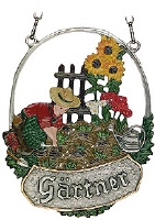 Handwerkergeschenk Zinnbild Gärtner oval, H: 11,0 cm, in Holz-Geschenkverpackung (16,5 x 16,5 x 3,5 cm), Gravur-Empfehlung: auf Verpackungsaußenseite, Bestellnummer: 12-02-180V