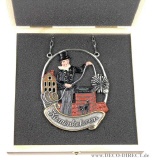 Handwerkergeschenk Zinnbild Kaminkehrer oval, H: 11,0 cm, in Holz-Geschenkverpackung (16,5 x 16,5 x 3,5 cm), Gravur-Empfehlung: auf Verpackungsaußenseite, Bestellnummer: 12-02-190V