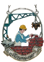 Handwerkergeschenk Zinnbild Maurer oval, H: 11,0 cm, in Holz-Geschenkverpackung (16,5 x 16,5 x 3,5 cm), Gravur-Empfehlung: auf Verpackungsaußenseite, Bestellnummer: 12-02-192V
