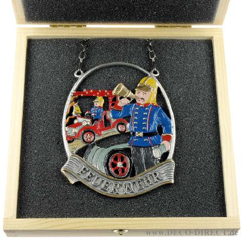 Handwerkergeschenk Zinnbild Feuerwehr oval, H: 11,0 cm, in Holz-Geschenkverpackung (16,5 x 16,5 x 3,5 cm), Gravur-Empfehlung: auf Verpackungsaußenseite, Bestellnummer: 12-02-278V