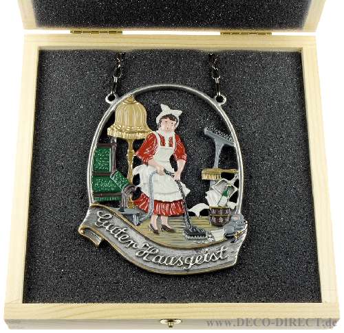 Handwerkergeschenk Zinnbild Guter Hausgeist oval, H: 11,0 cm, in Holz-Geschenkverpackung (16,5 x 16,5 x 3,5 cm), Gravur-Empfehlung: auf Verpackungsaußenseite, Bestellnummer: 12-02-226V