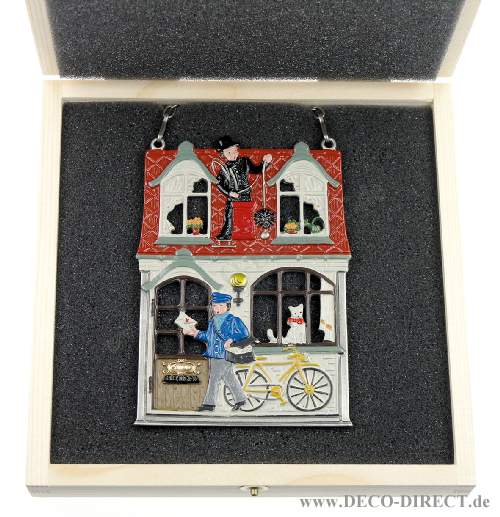 Handwerkergeschenk Zinnbild Kaminkehrer und Briefträger, H: 12,0 cm, in Holz-Geschenkverpackung (16,5 x 16,5 x 3,5 cm), Gravur-Empfehlung: auf Verpackungsaußenseite, Bestellnummer: 12-02-167V