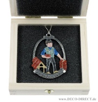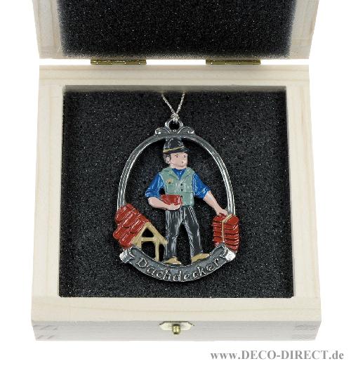 Handwerkergeschenk Zinnfigur Dachdecker, H: 6,0 cm, inkl. Aufhänger, in Holz-Geschenkverpackung (9,5 x 9,5 x 3,5 cm), Gravur-Empfehlung: auf Verpackungsaußenseite, Bestellnummer: 13-20-066V