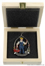 Handwerkergeschenk Zinnfigur Elektriker, H: 6,0 cm, inkl. Aufhänger, in Holz-Geschenkverpackung (9,5 x 9,5 x 3,5 cm), Gravur-Empfehlung: auf Verpackungsaußenseite, Bestellnummer: 13-20-030V