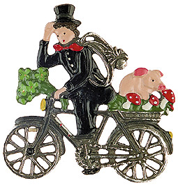 Handwerkergeschenk Zinnfigur Kaminkehrer mit Fahrrad, H: 5,0 cm, Bestellnummer: 13-05-498C